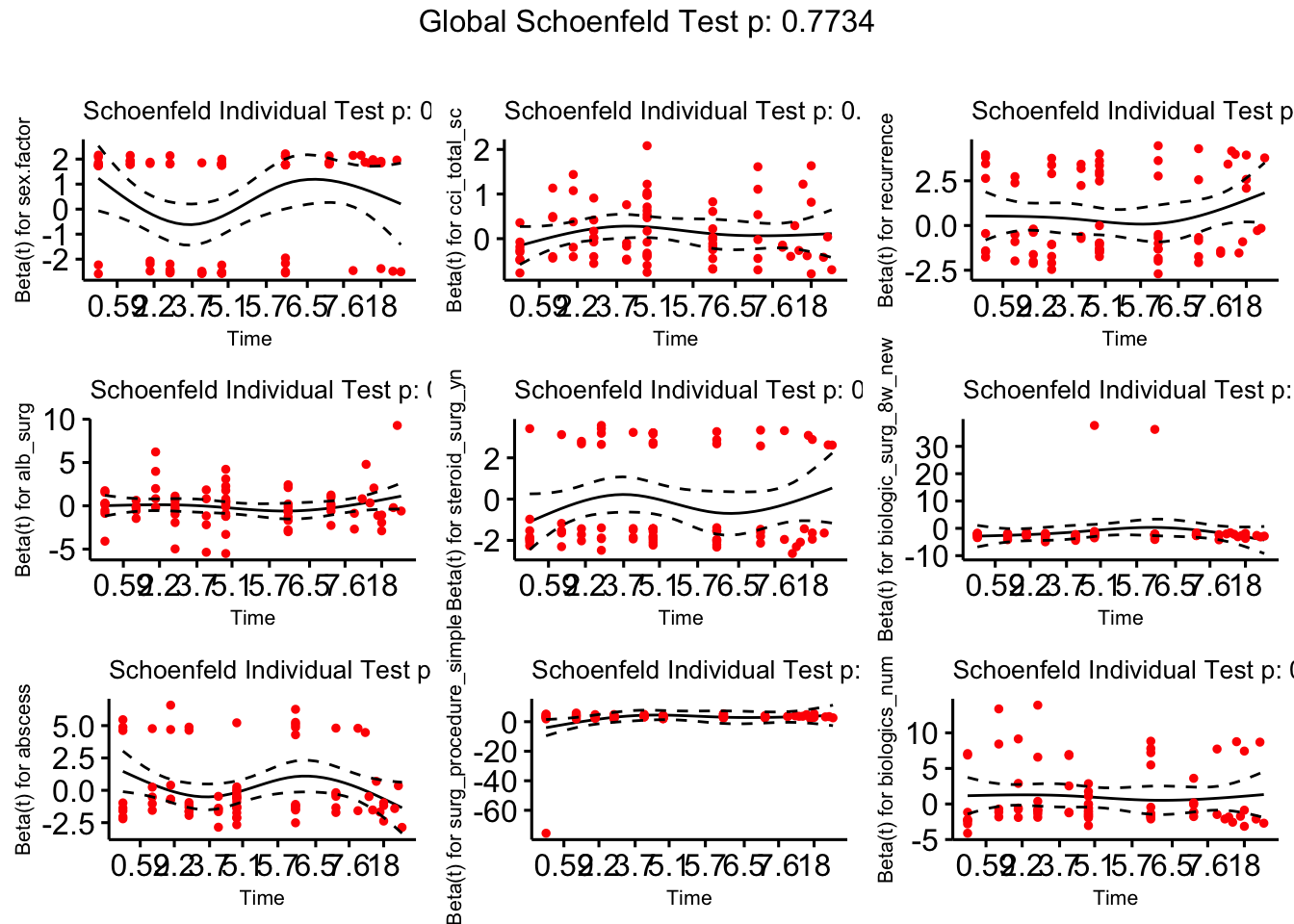 ), levels = c (0 : 1 ), labels = c ("No" , "Yes" )), label = "Exposed to biologics within 8 weeks from surgery vs all others" ),